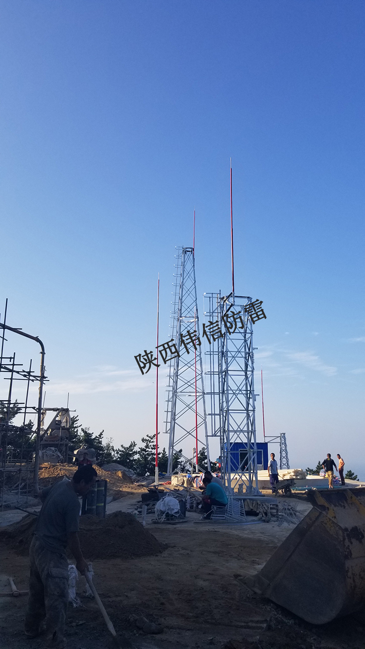 1.避雷針的裝配和安裝是施工現(xiàn)場進行的,裝配時,在接閃器裝入玻鋼管之前,先將銅線一端接線鼻子后,與接閃器下端的螺栓連接并焊接在基座或底板上,注意:基座或底板的安裝螺栓必須與建筑鋼筋進行焊接;·