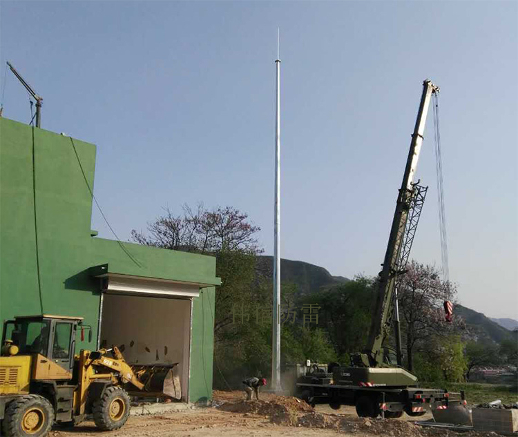 將避雷針的各段首尾連接(法蘭連接或插接法),固定在預(yù)埋的基礎(chǔ)底座上。(有些配件需要工程商根據(jù)實(shí)際情況加工)可以人工安裝也可以機(jī)械吊裝。