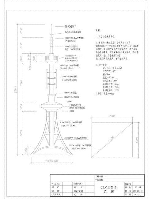 b屋面上的避雷塔采用直徑25mm鍍鋅鋼管。