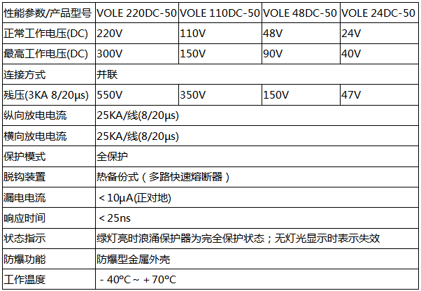 產(chǎn)品型號:VOLE DC-50系列防雷器