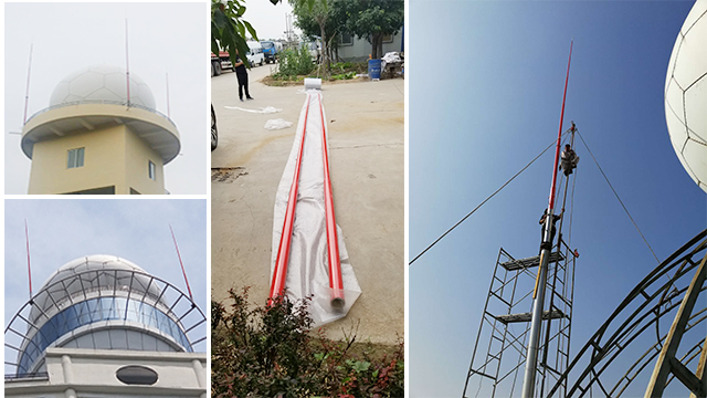 玻璃鋼避雷針具有屏蔽住泄流的雷電流并防止雷電跳閃的優(yōu)良特性,可保證新一代多普勒天氣雷達電磁波信號