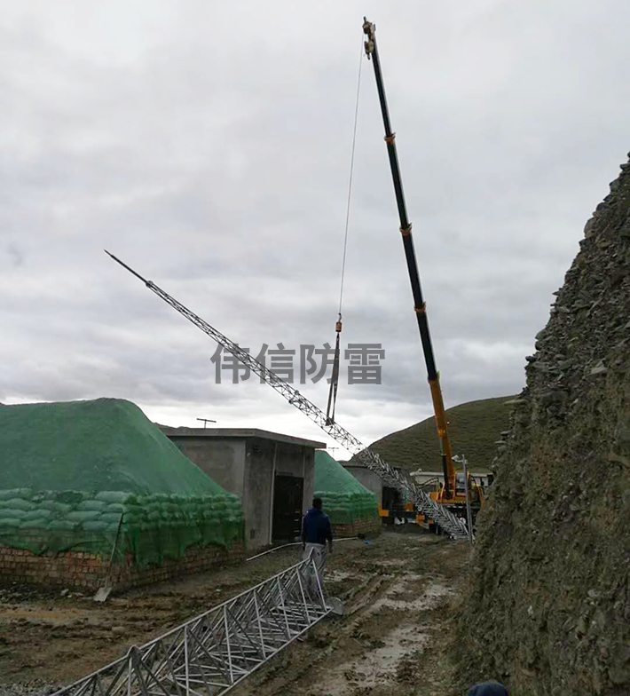 2018年4月應(yīng)要求,陜西偉信防雷應(yīng)要求為甘肅隴南某炸藥庫雷、管庫做了雷電防護(hù),此次直擊雷防雷工程用到兩座30米三角避雷塔、石墨接地模塊、降阻劑、銅包鋼接地棒等水平接地體、垂直接地體等防雷材料。