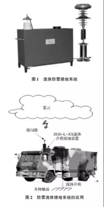 在駐車狀態(tài)下,利用傳統(tǒng)的固體接地棒,需要打入大地中,可以解決防雷接地問題,但顯而易見,難以應(yīng)用在車輛的行駛狀態(tài)中。鐵鏈或?qū)щ娤鹉z帶雖然可以應(yīng)付運(yùn)行中一部分接地問題,但實(shí)際運(yùn)用中仍存在磨損大、接地電阻大、接觸不穩(wěn)定甚至不接地等問題[3] 。本文提出了軍用移動(dòng)電站“流體接地系統(tǒng)”,該系統(tǒng)科學(xué)地解決軍用移動(dòng)電站在高速行駛中的接地問題。