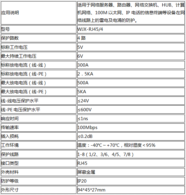 適用于網絡服務器、路由器、網絡交換機、HUB、計算機網絡、100M以太網、IP電話的信息終端等設備在網絡線路上的雷電及電涌的防護。