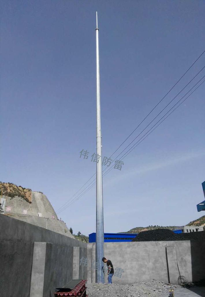 加油站(油罐區(qū))、加氣站(氣罐區(qū))一般安裝獨(dú)立避雷針11-19米之間,采用偉信GH系列環(huán)形鋼管避雷針。