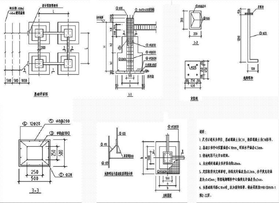 避雷塔基礎(chǔ)大樣圖