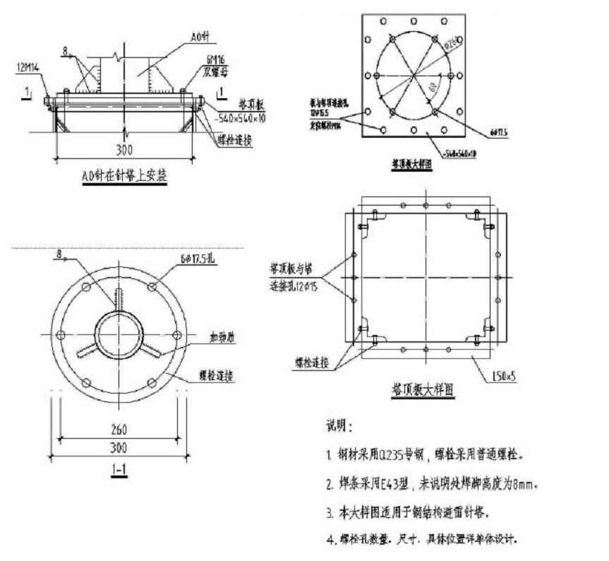 避雷塔鋼結(jié)構(gòu)連接大樣圖