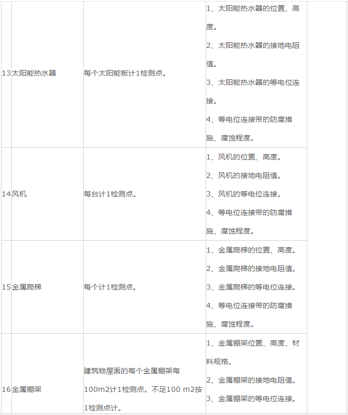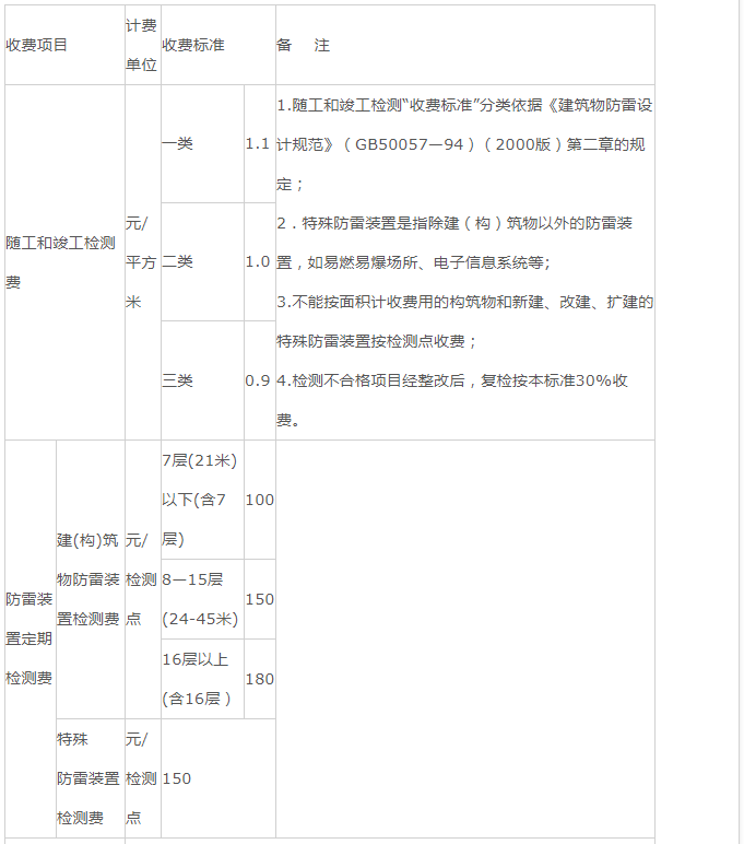 四、不能按面積計(jì)收費(fèi)用的構(gòu)筑物和新建、改建、擴(kuò)建的特殊防雷裝置可按檢測(cè)點(diǎn)收費(fèi)。